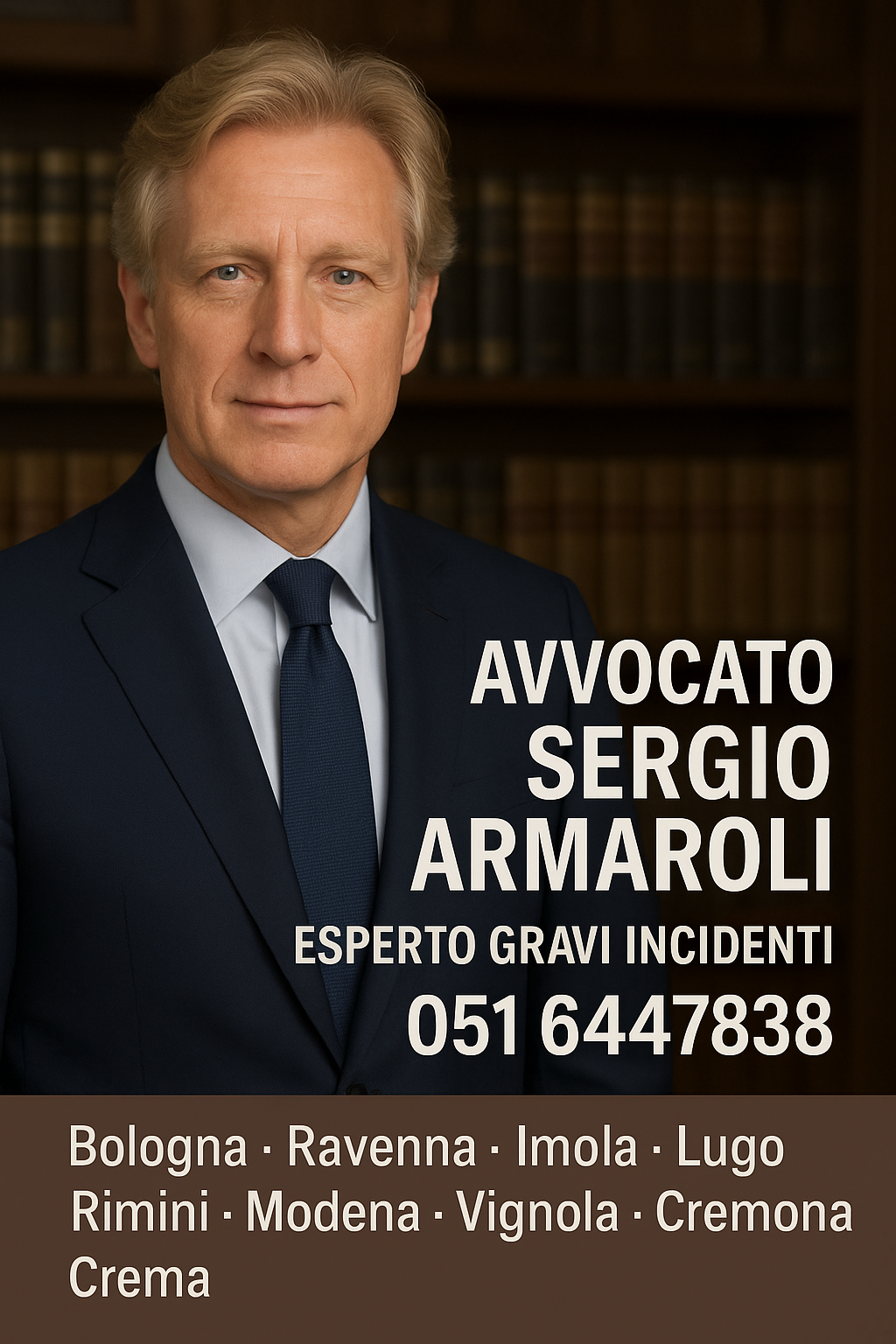 L’avvocato Sergio Armaroli, con studio legale a Bologna e presenza attiva in Modena, Ravenna, Imola, Lugo, Rimini, Vignola, Cremona, Crema e Castelfranco Emilia, ha oltre 25 anni di esperienza nella tutela delle vittime di incidenti stradali con esiti gravissimi.