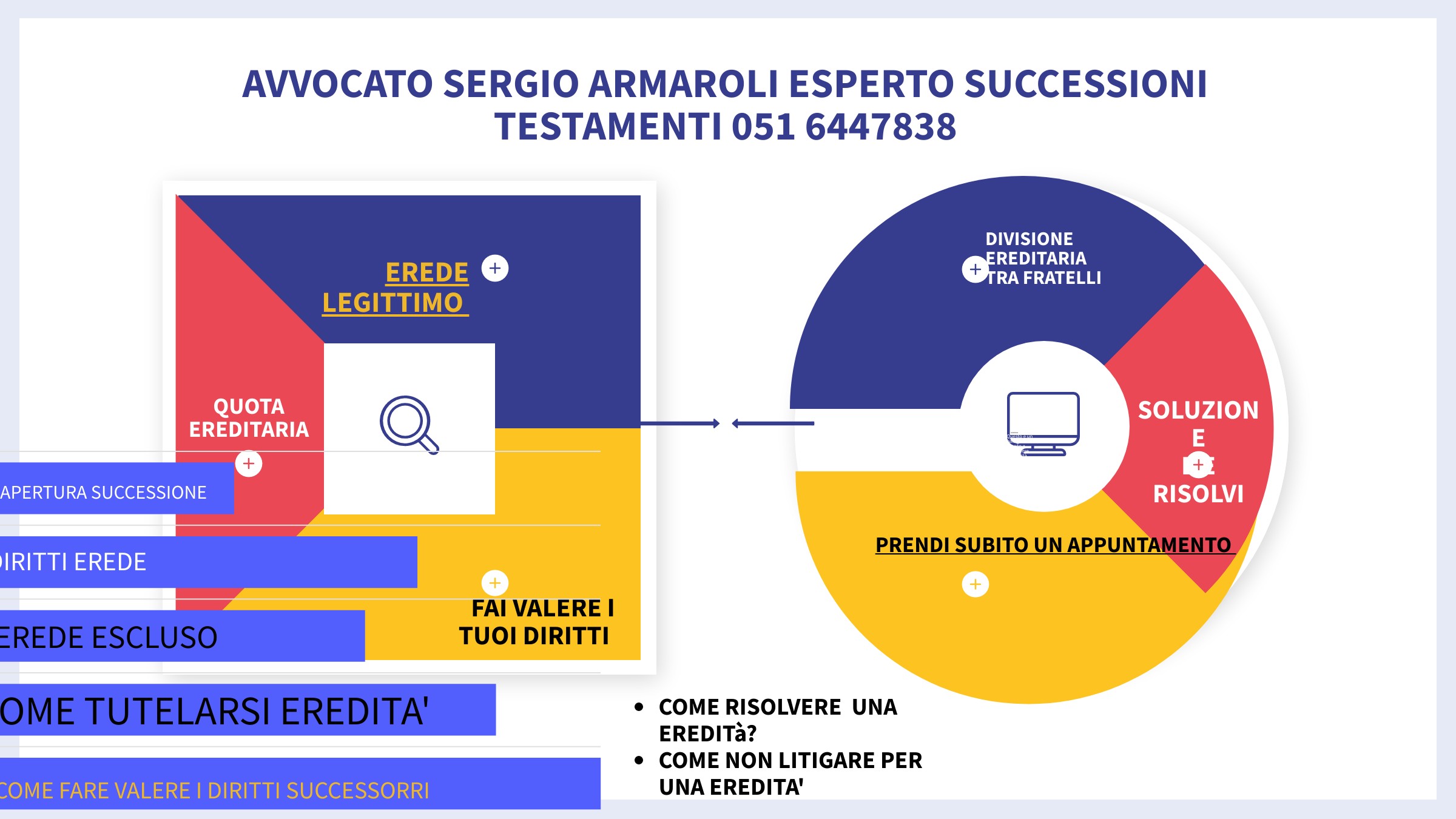 Con una ottima qualita’ del servizio l’avvocato Sergio Armaroli di Bologna fornisce consulenza e assistenza, giudiziale e stragiudiziale, in materia di diritto successorio ed ereditario.